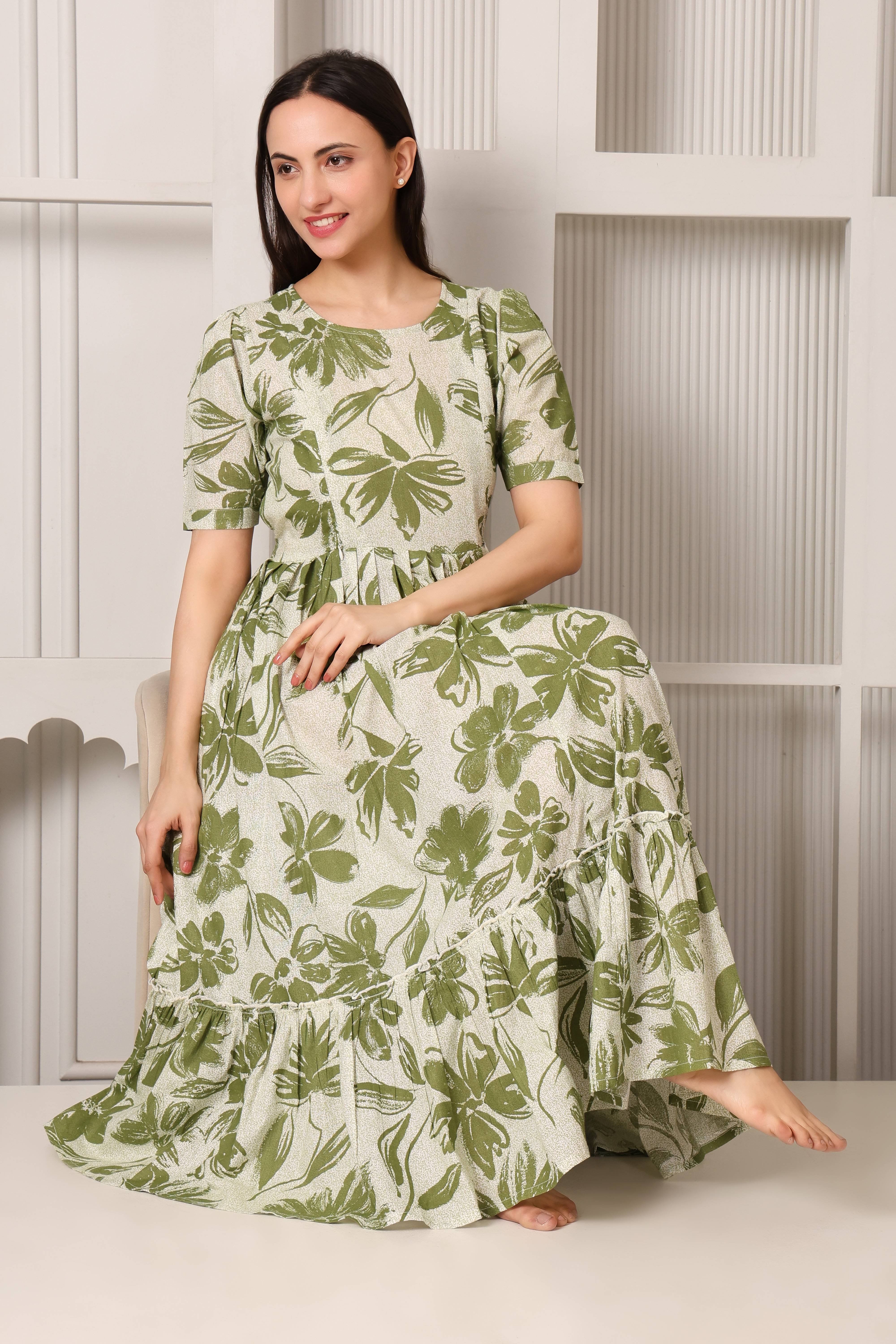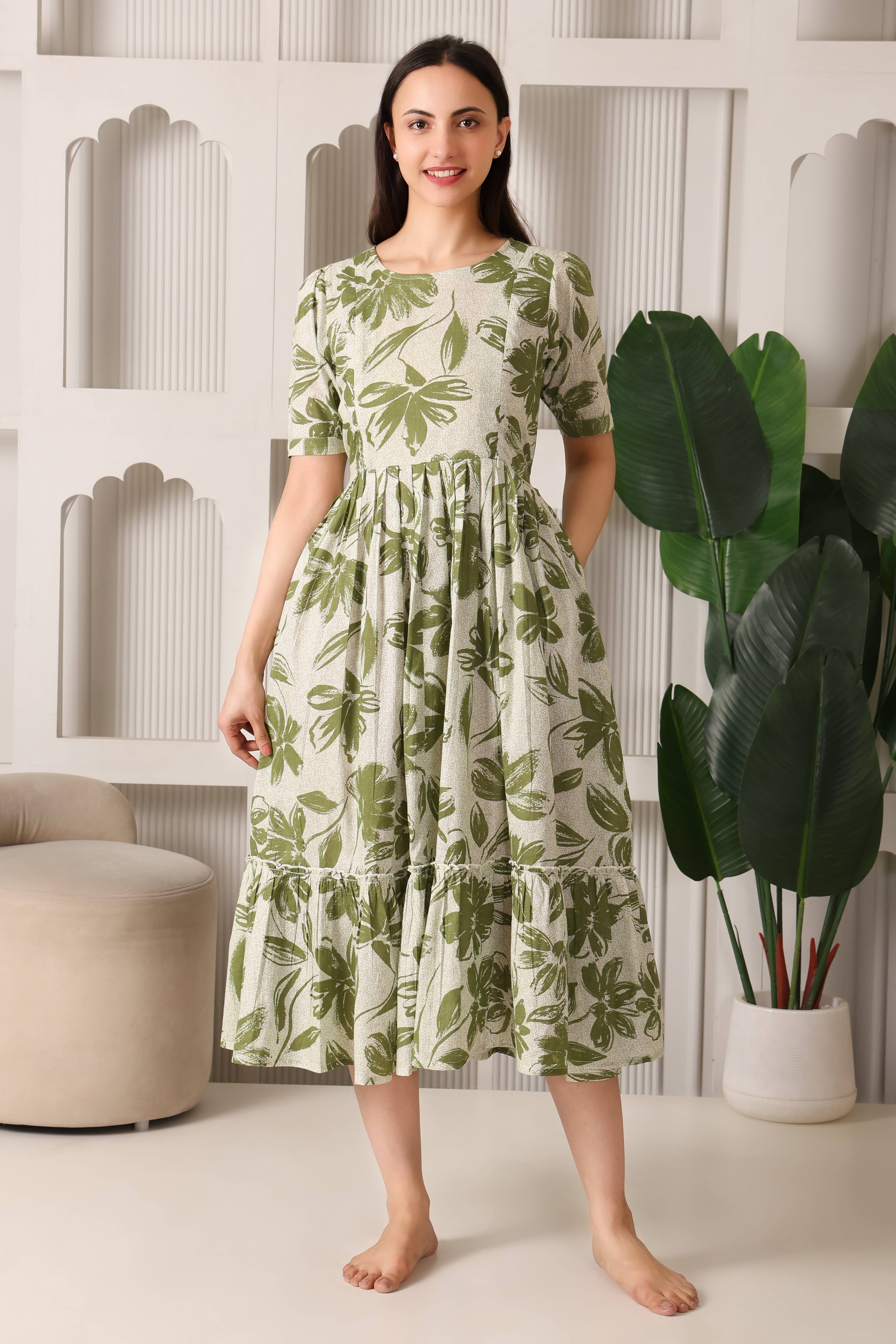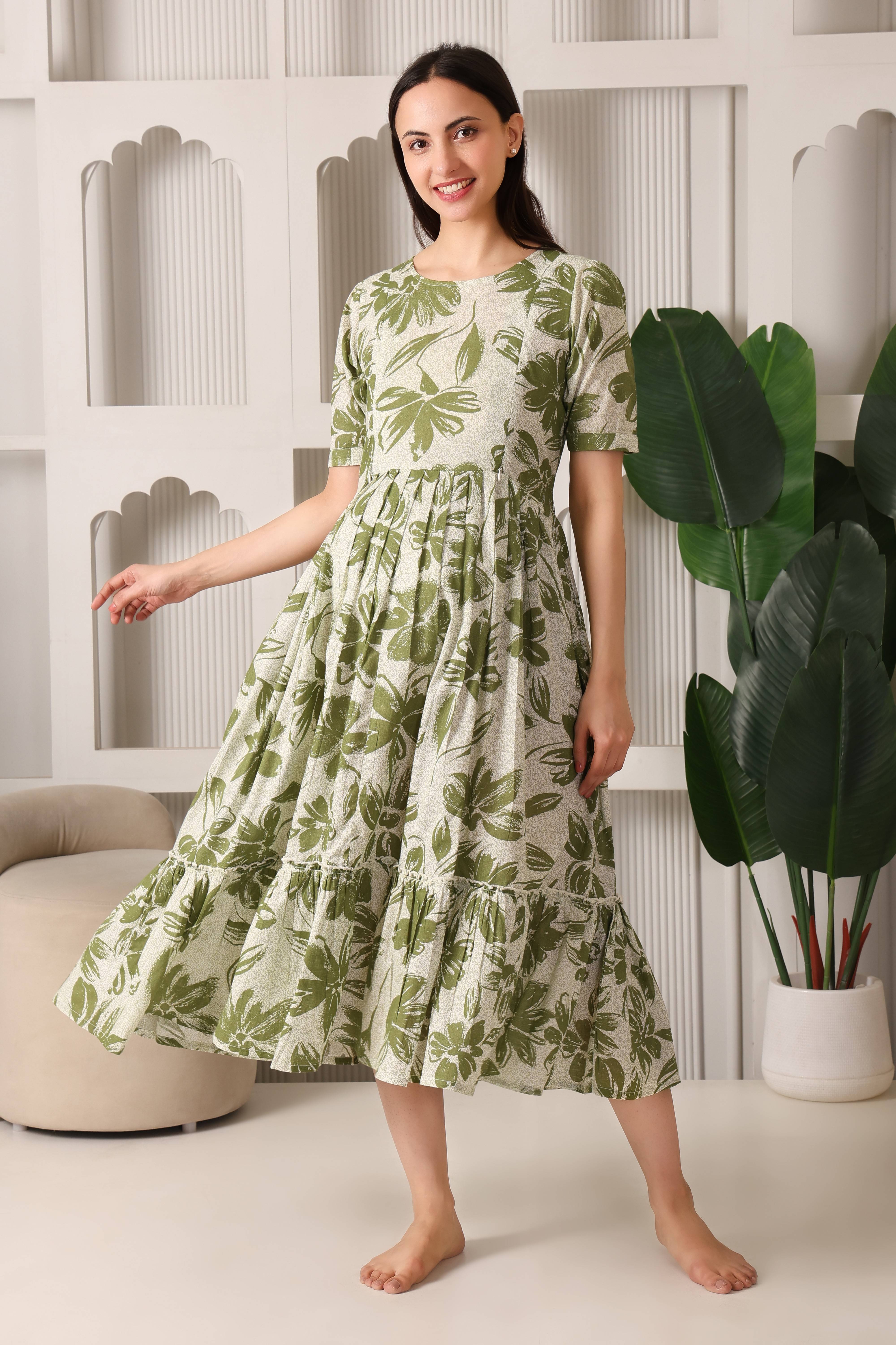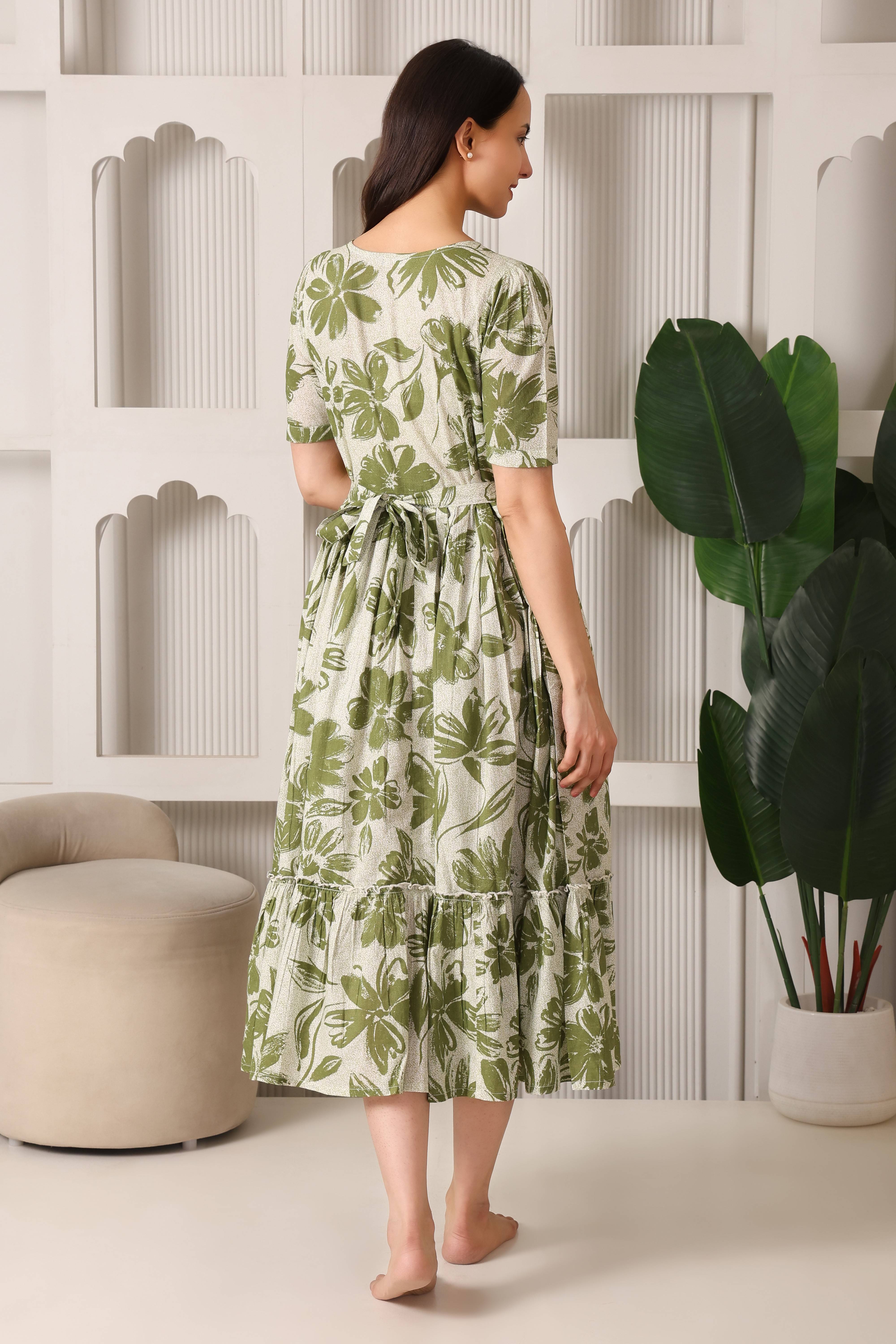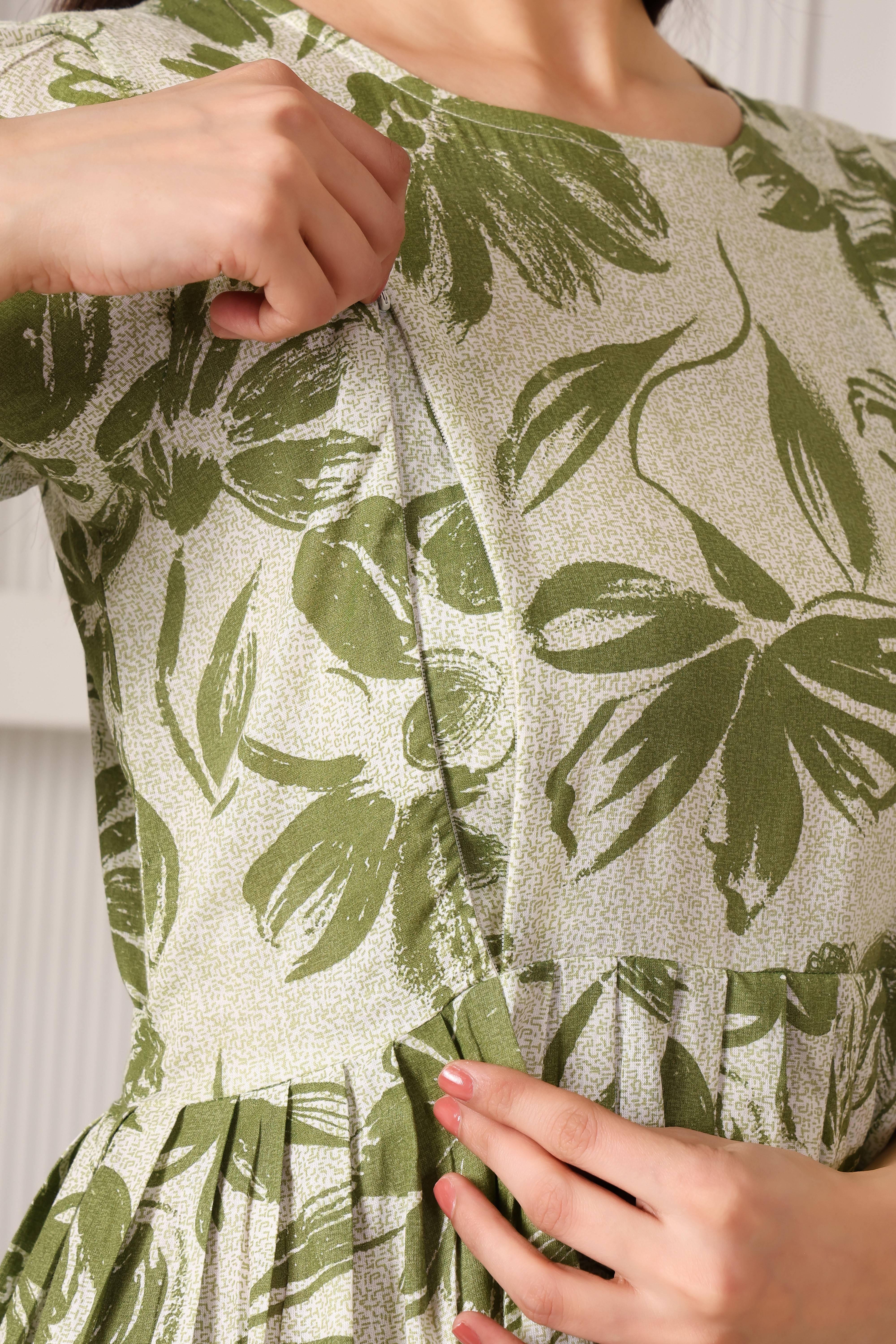 Easy Breezy Pure Cotton Maternity & Feeding Flare (Olive)