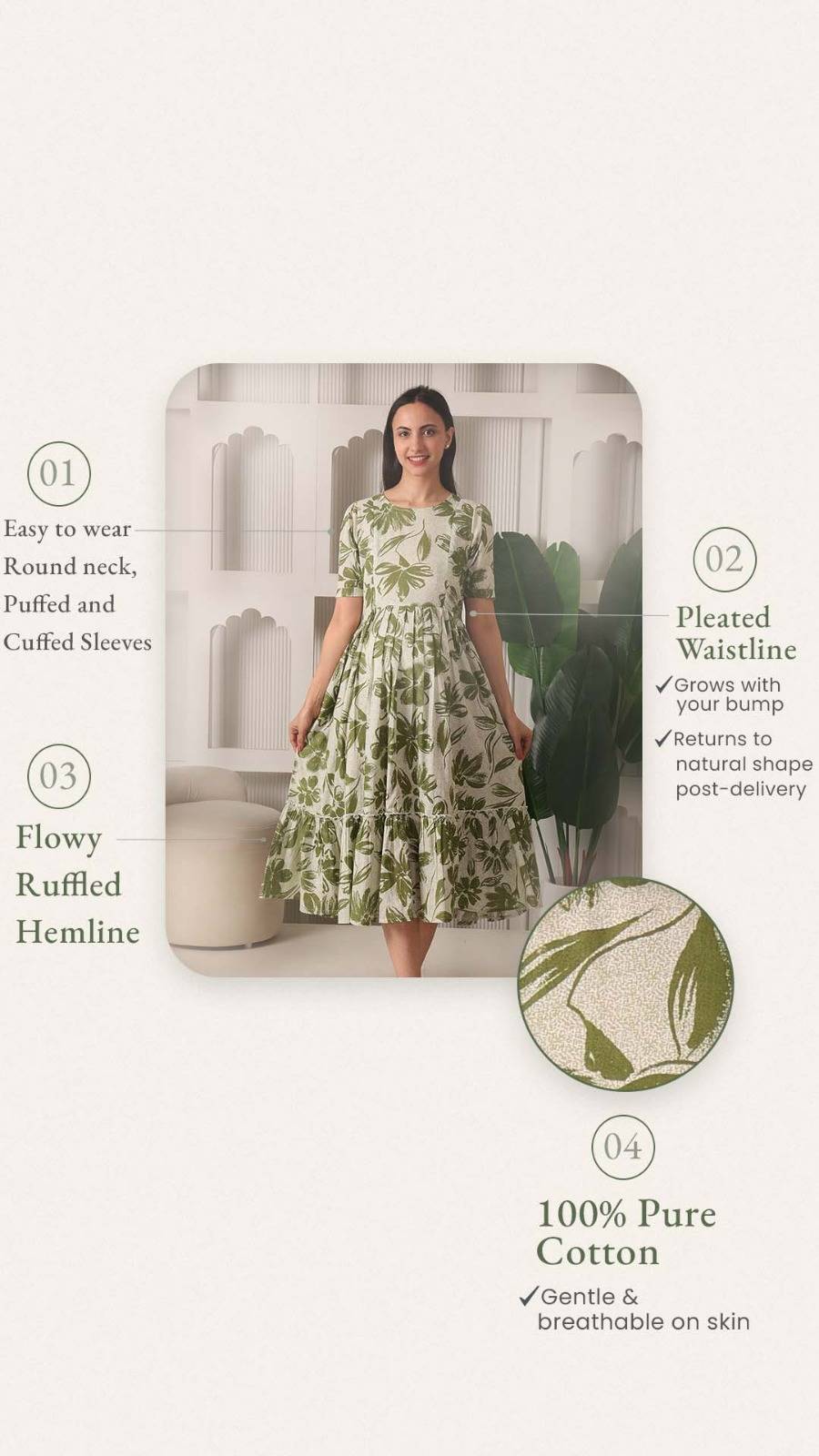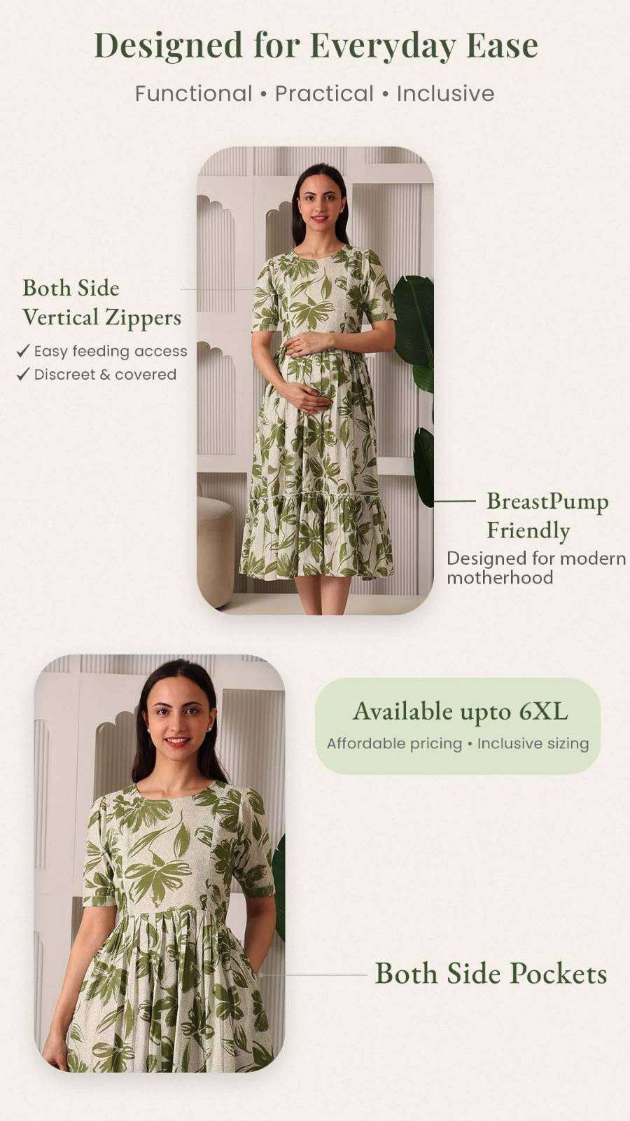 • The Maternity Must-Have: A perfect blend of style and utility that transitions seamlessly from a comfortable pregnancy dress to a functional nursing outfit.