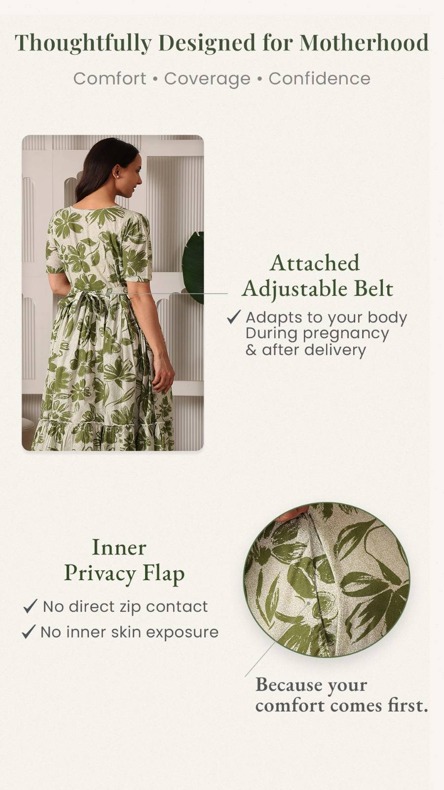 • Dual-Side Nursing Access: Features discreet zippers on both sides with inner privacy flaps to ensure smooth, irritation-free feeding and zero skin-show.