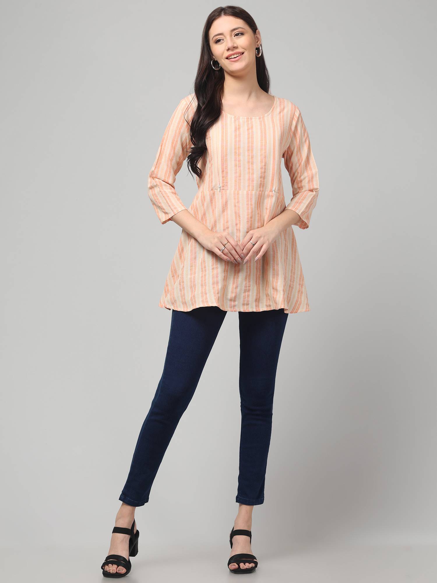 • Versatile Styling: A chic round-neck design with 3/4 sleeves that pairs perfectly with jeans, palazzos, or leggings for any occasion.