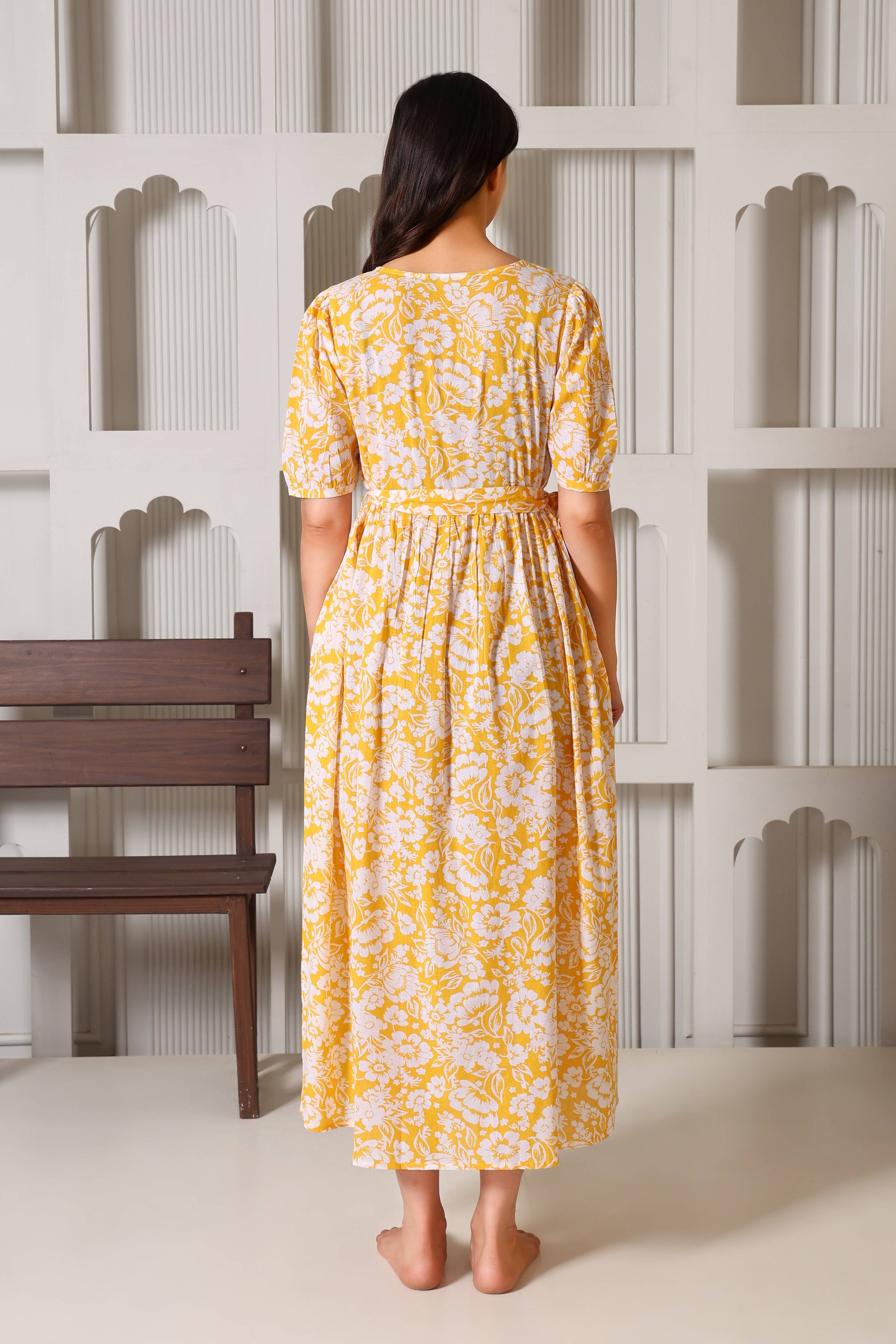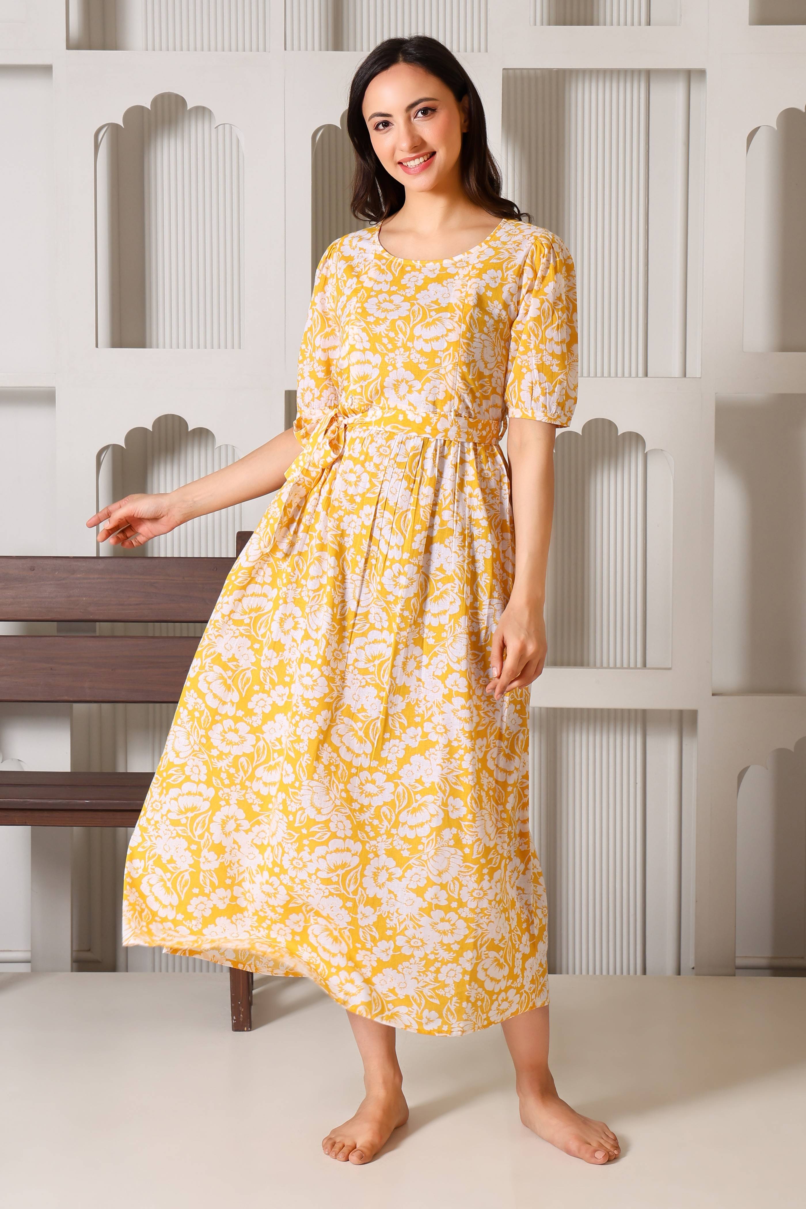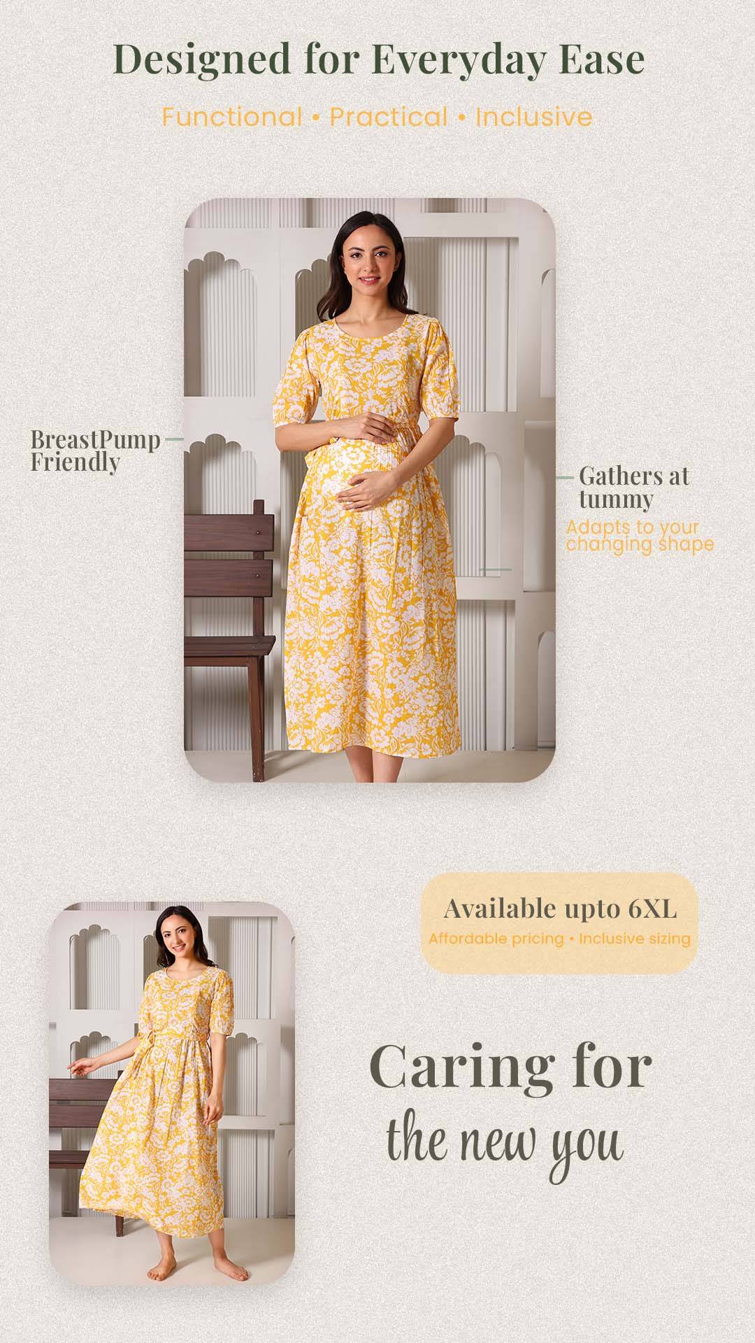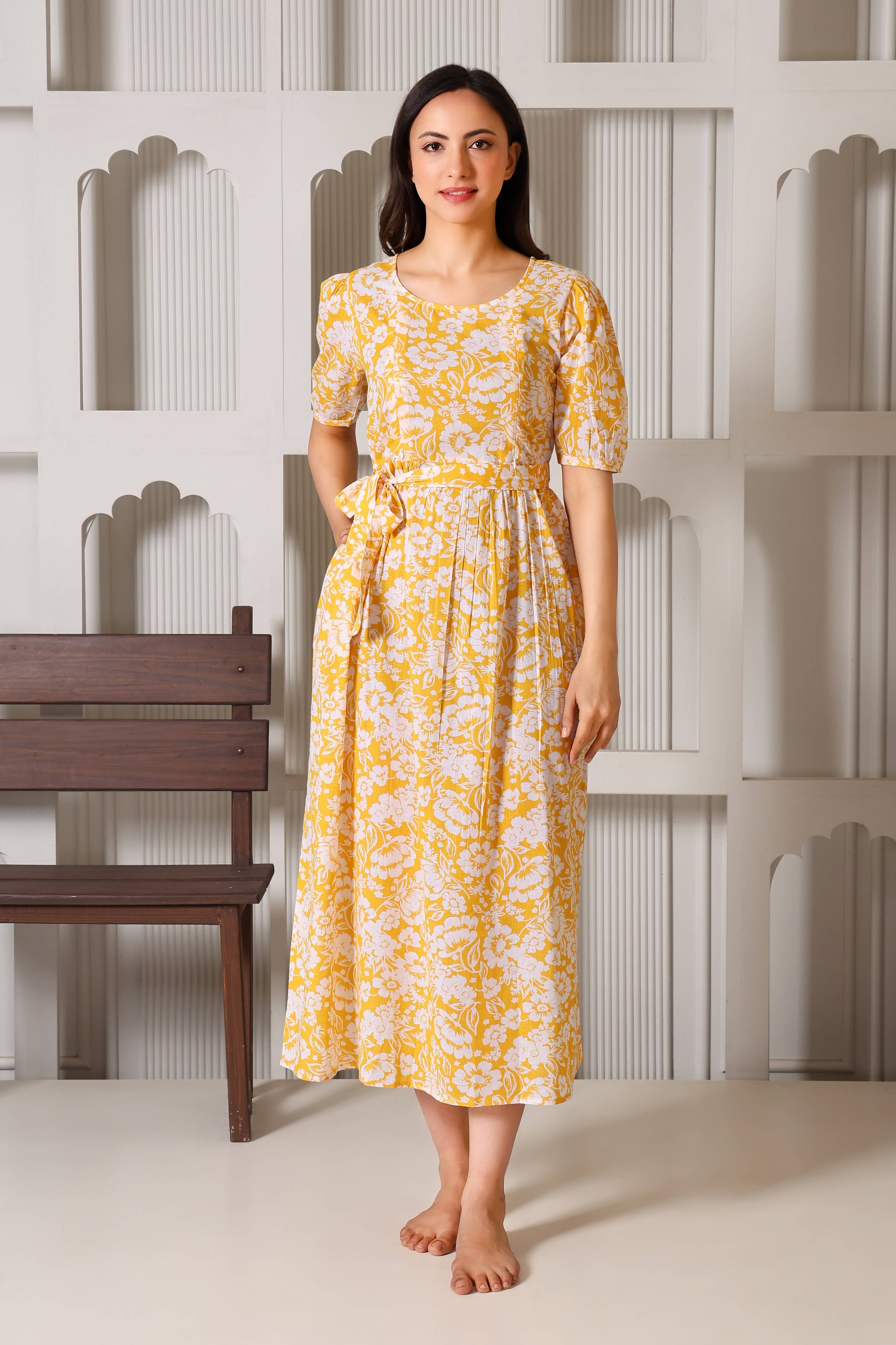 Crafted from 100% premium cotton, this dress is the perfect blend of feminine charm and functional design. We’ve replaced bulky "maternity wear" with a tailored silhouette that features hidden dual-sided zippers and privacy flaps, ensuring your nursing journey is as comfortable as it is stylish. From the elegant puff sleeves to the versatile waist-tie, it’s designed to be your go-to outfit throughout pregnancy and well into motherhood.